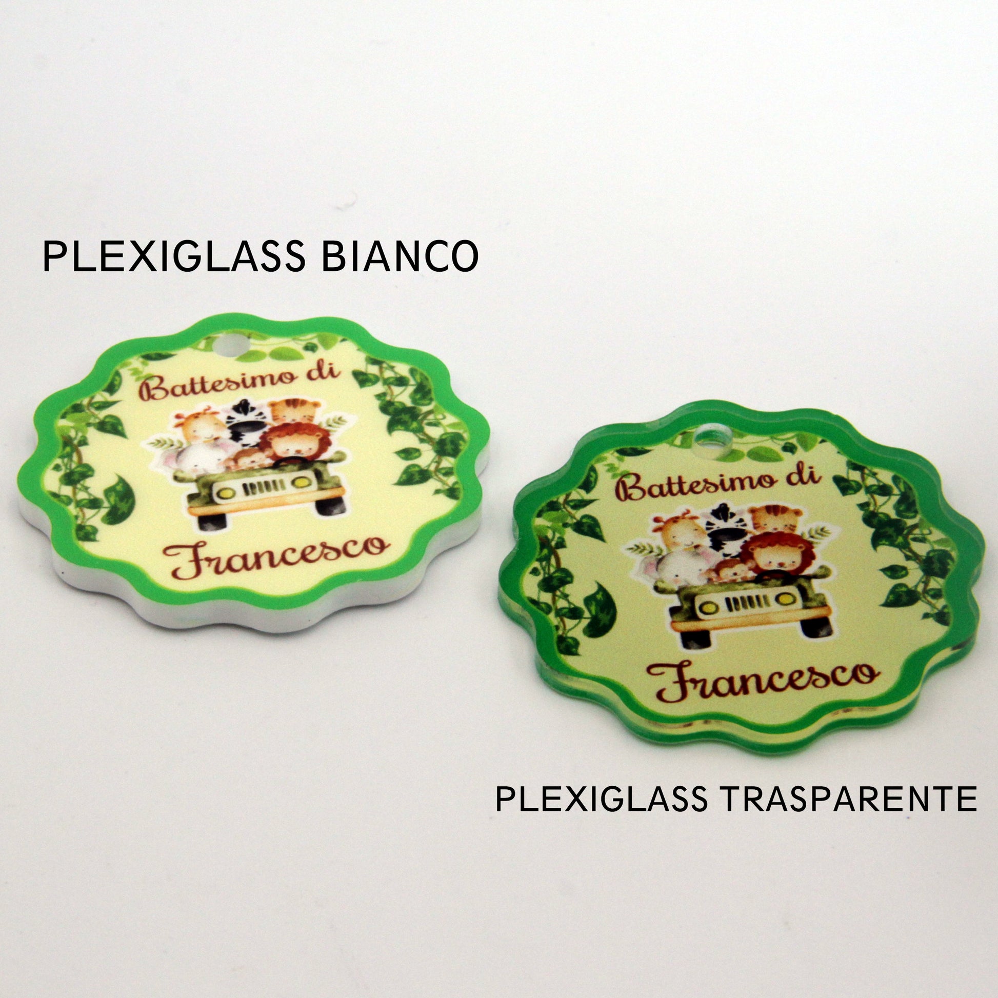 Realizzata in plexiglass da 3 ha un formato di 5x5 centimetri, si adatta splendidamente a qualsiasi tipo di scatolina o sacchettino portaconfetti. Le sue dimensioni ottimali la rendono perfetta per qualsiasi confezione senza compromettere il risultato finale, aggiungendo un tocco di eleganza e originalità alla tua bomboniera personalizzata.