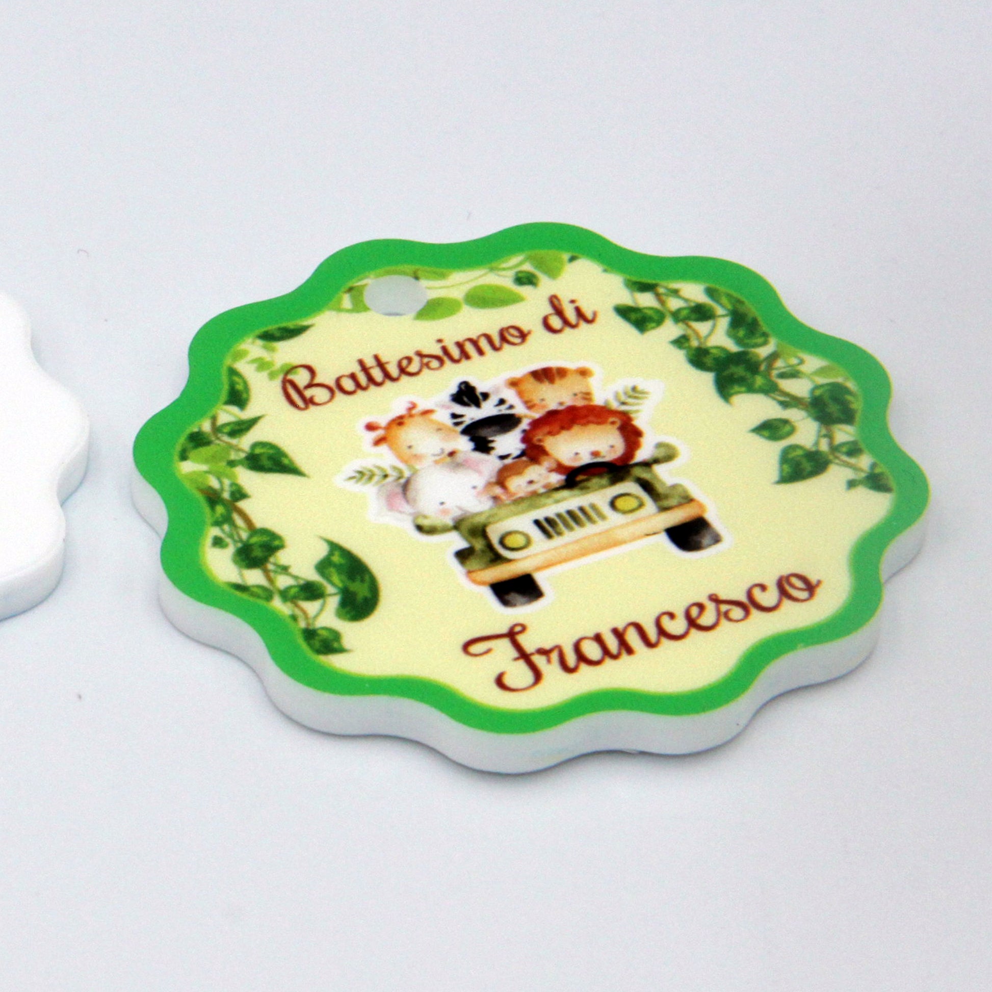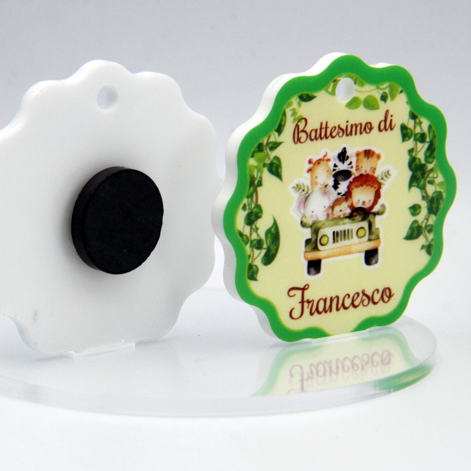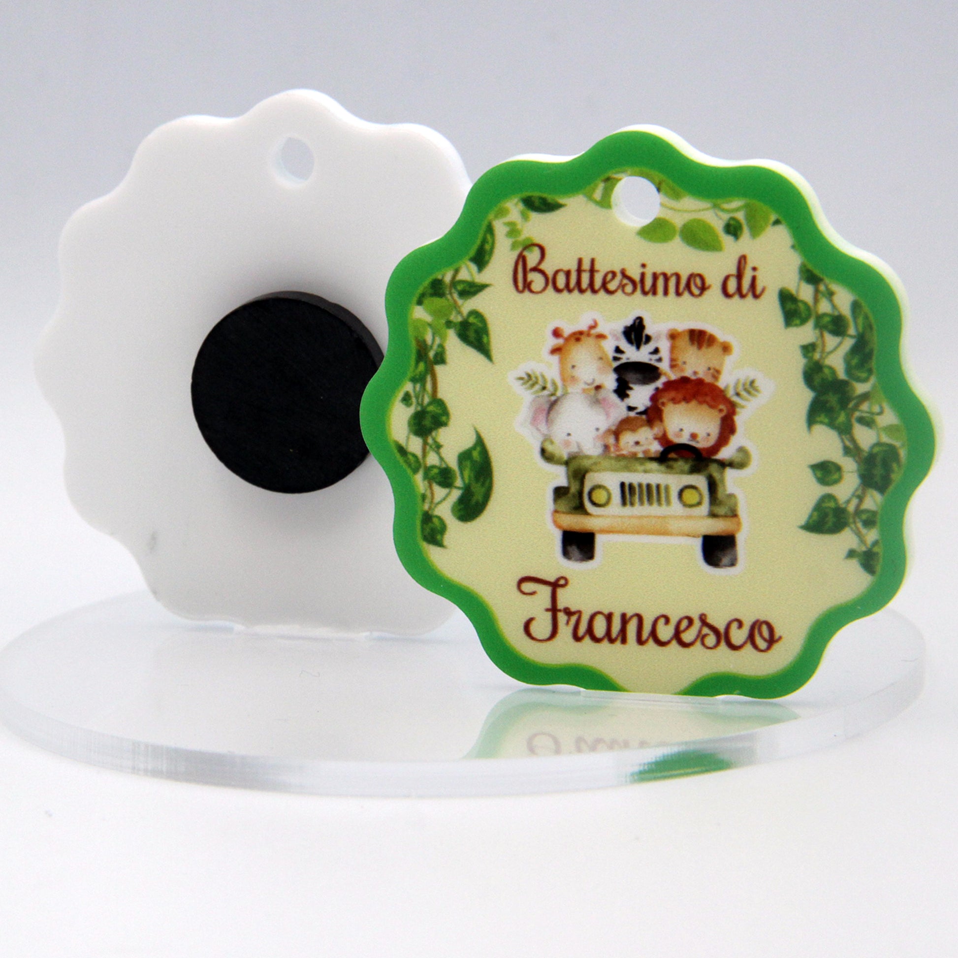 Calamita Personalizzata per Bomboniera Nascita o Battesimo da 24 pz (Safari 10) | Spedizione Gratuita
